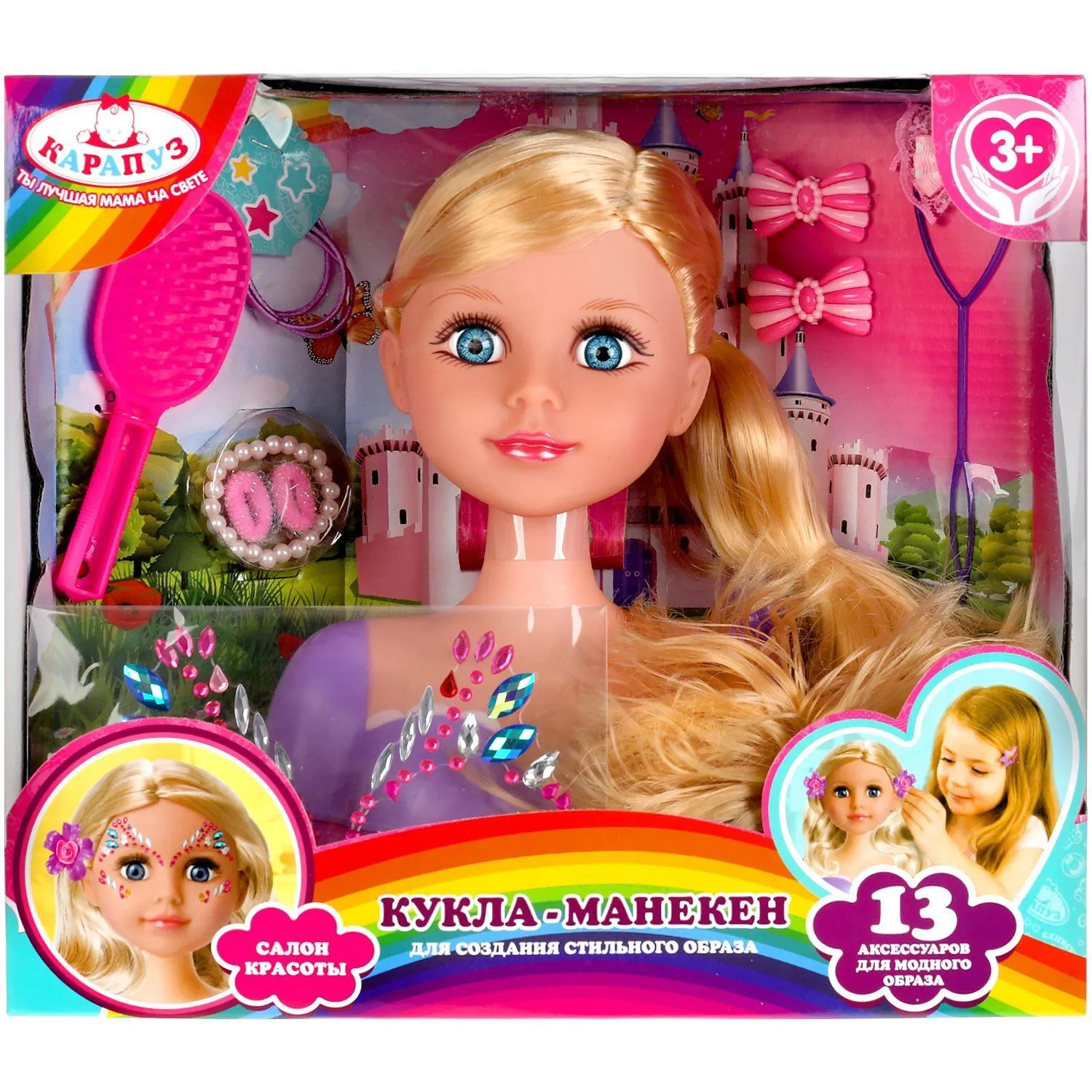 Эта очаровательная кукла, с детально проработанным личиком, очарует вашу малышку. Красивые блестящие волосы легко расчесываются. С этой куклой-манекеном девочка с удовольствием будет учиться делать самые разнообразные причёски. Все аксессуары малышка может использовать и для украшения своих волос.