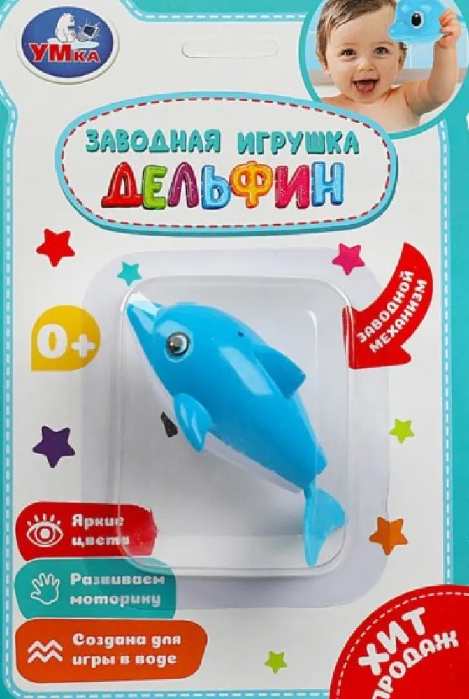 Заводной дельфин сделает купание ребёнка весёлым и интересным занятием. Если запустить механизм, он будет быстро плавать, активно двигаясь в воде, что несомненно увлечёт малыша и подарит ему массу положительных эмоций.